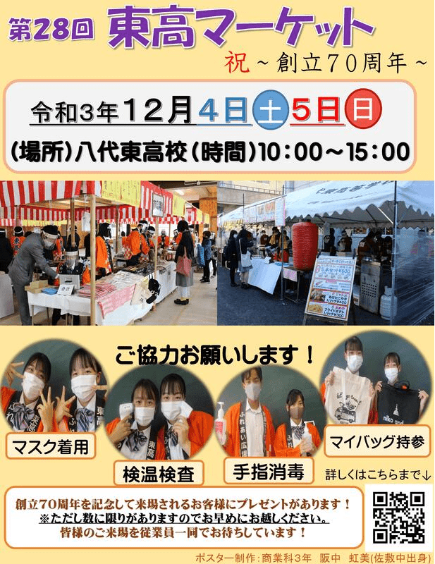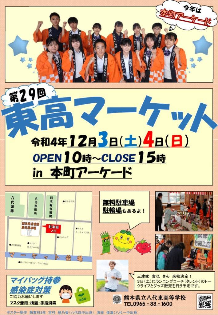 日頃の教育活動を地域の皆様に知っていただくため、生徒が中心となって取り組む『大型販売実習』を実施しています。この実習は、県内の協賛企業や店舗のご協力を得て行われており、生徒自身が仕入れ、販売、商品や資金の管理を担当します。地域の特産品をはじめ、豊富な商品ラインナップを取り揃えています。また、生徒たちが実習の過程で開発した商品も、この『東高マーケット』でお買い求めいただけます。