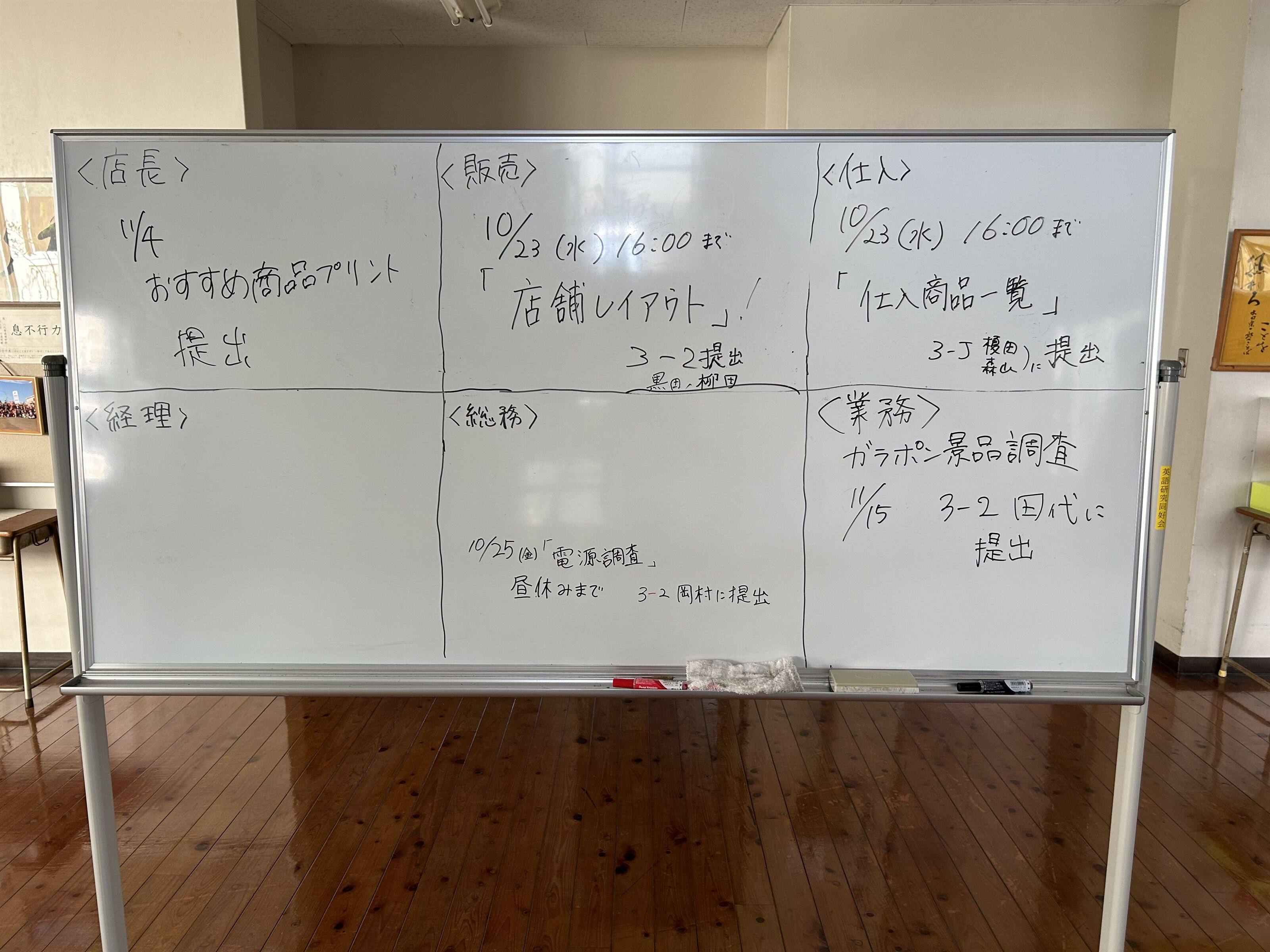 販売当日に向けた計画を共有できるように、必ず目につくところに掲示しています。