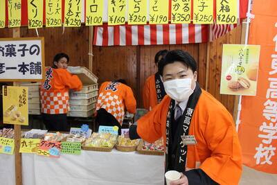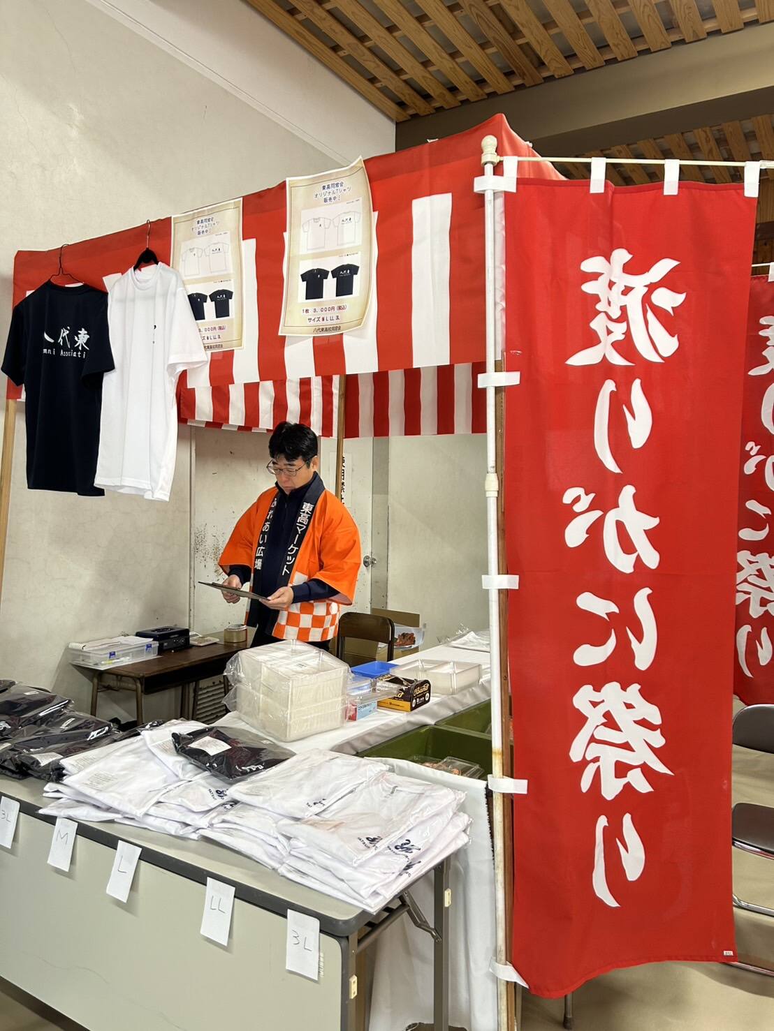今年の東高マーケットでは、同窓会として販売ブースを出店しました。会場では赤白の幕を掲げた屋台風ブースを設け、多くの来場者でにぎわいました。